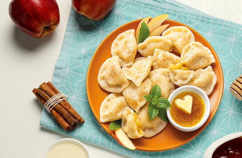 Dumplings with roasted apples and cinnamon with cinnamon butter