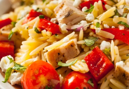3. Sałatka makaronowa z kurczakiem i warzywami