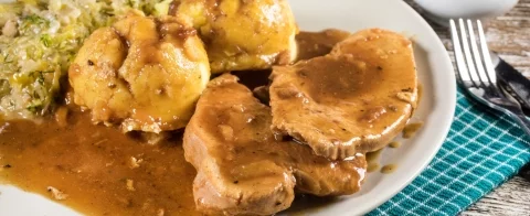 Innym daniem mącznym, które idealnie komponuje się z bitkami wieprzowymi, są kluski śląskie, kluski leniwe lub kluski na parze. Dwie pierwsze wersje, podobnie jak kopytka, idealnie komponują się z sosem. Kluski na parze to wersja dla osób zdecydowanych na łagodniejszy i lżejszy wariant. Gotowe zestawy do podgrzania w kilka minut znajdziesz w naszej ofercie: Dania mączne.